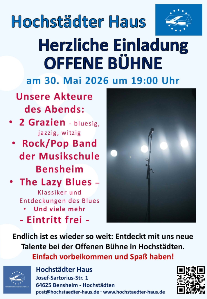 Am 30. Mai 2026 um 19:00 Uhr ist es wieder so weit: Das Hochstädter Haus öffnet seine Türen für ein besonderes Mini-Festival mit Live-Musik, neuen Talenten und mitreißender Atmosphäre.